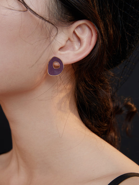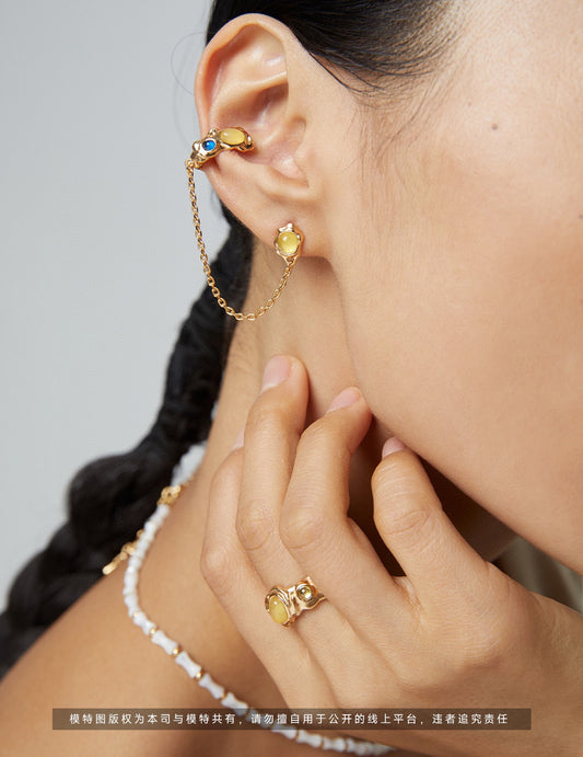多彩宝石镶嵌中古系列 纯银AB款不对称耳环
