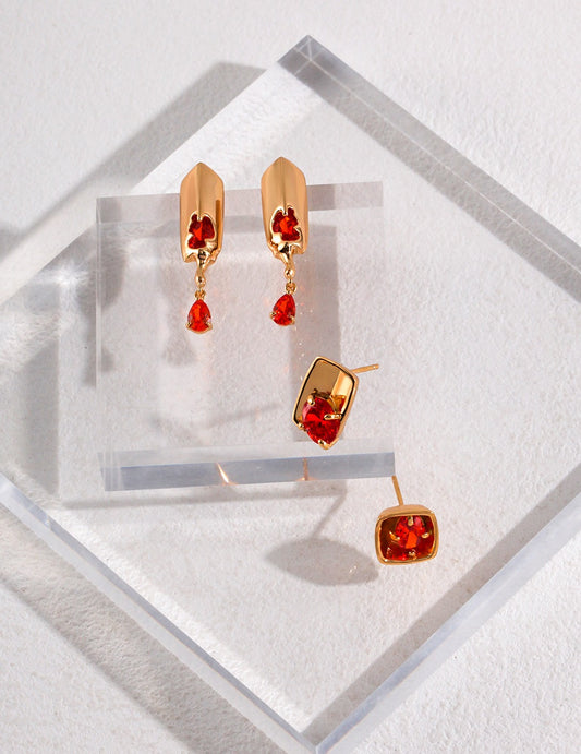对折设计系列款 纯银AB款不对称耳环