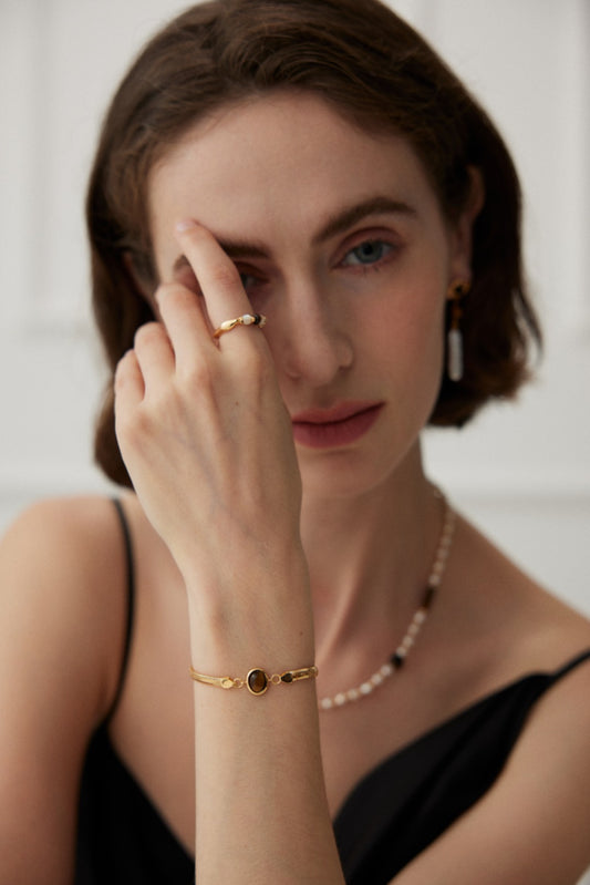 小香风的时尚精致,荆棘护卫着蔷薇动人的绚烂。珍珠链身点缀和玛瑙与纯银隔片,更打破了传统。