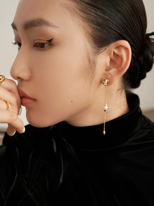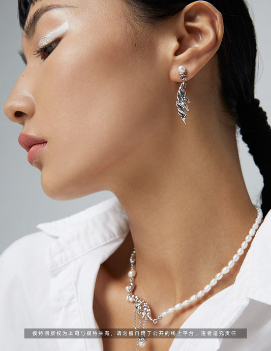 风蚀飘羽系列款 纯银珍珠耳环