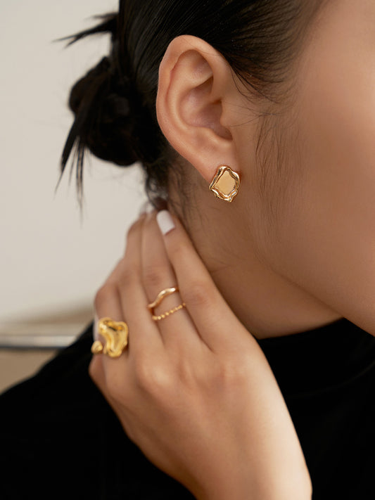 闪耀金色结形耳钉,简约时尚,佩戴在耳畔,散发迷人魅力。