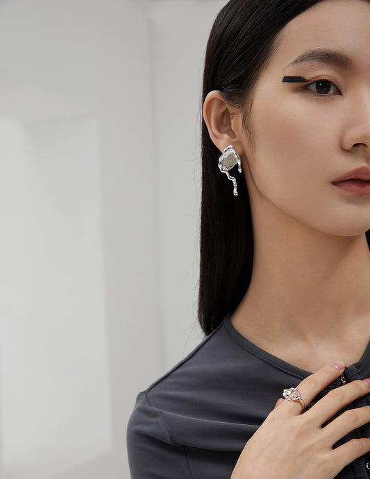 促销镜泊系列 纯银不对称耳环