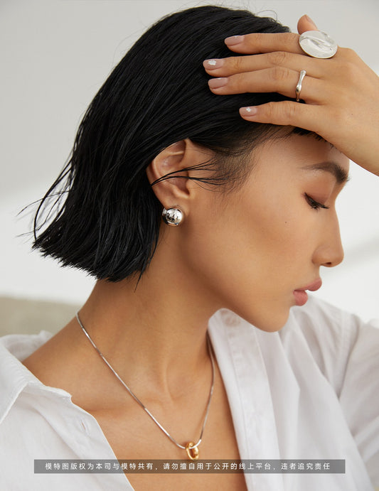 不规则褶皱设计系列 纯银蛋白石耳环