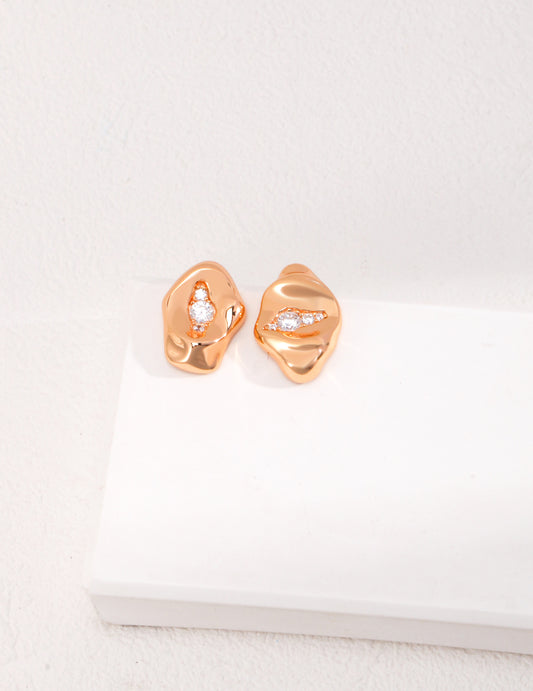 手雕肌理款圆形耳钉,跳刀法纯手工雕刻,在树纹与锤纹之间平衡,融合自然肌理与人造肌理。