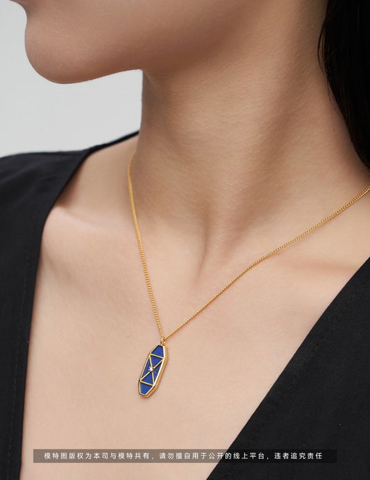 天然青金石镶嵌中古系列 纯银项链(证书没有附赠)