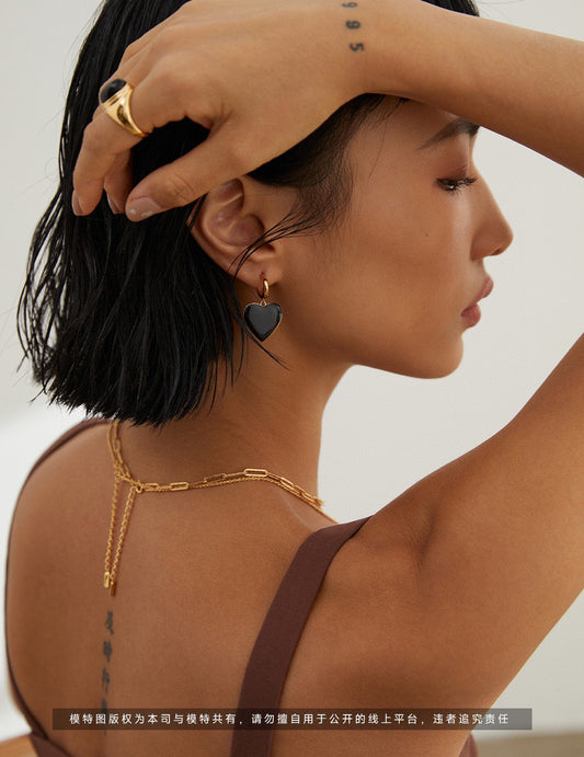 Sterling silver black zircon earrings court style