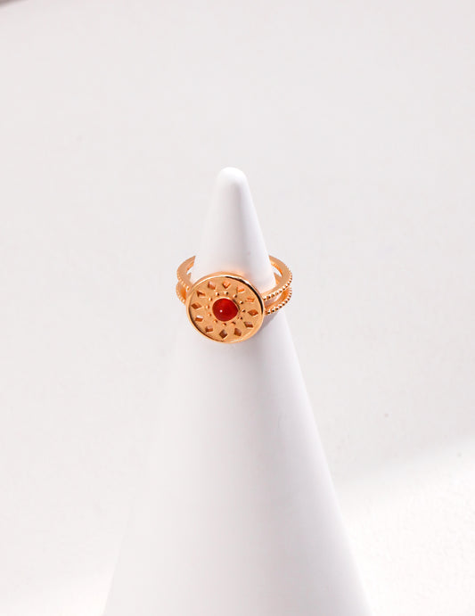 The design is inspired by classical Roman totem elements and embellished with agate in a warm sunny tone. The coldness of the metal is touched by the warmth and turns into confidence between the fingertips.