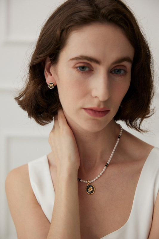 Sterling silver black zircon necklace palace style