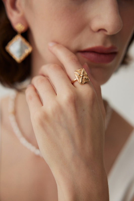 The lucky four-leaf clover design ring uses bas-relief craftsmanship to combine the sense of volume with the sense of flatness, perfectly presenting a sense of luxury.