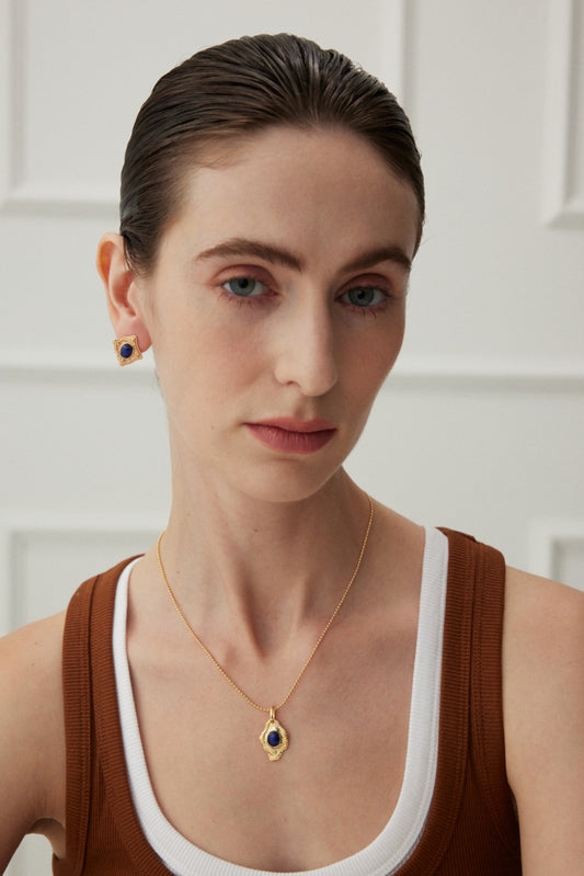 Hand-carved ins style lapis lazuli hanging, irregular wax dripping process creates a natural flowing shape, hand-carved patterns,