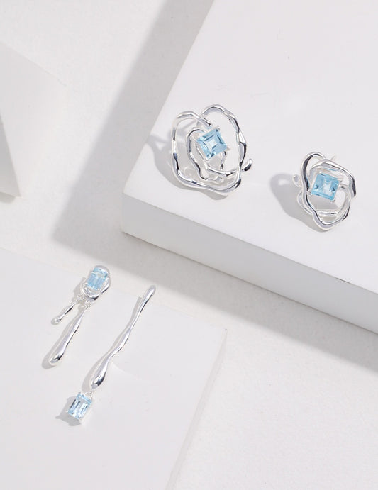 Turbid Sun Series Sterling Silver AB Asymmetrical Earrings