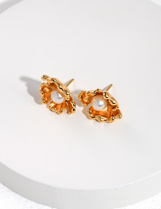 Wave design series sterling silver pearl earrings