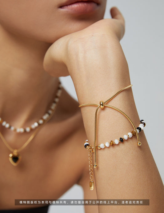 The drip glaze bracelet combines the ins style with the elegant winter red, embellished with French romantic pearls and a zipper structure, making it more advanced.