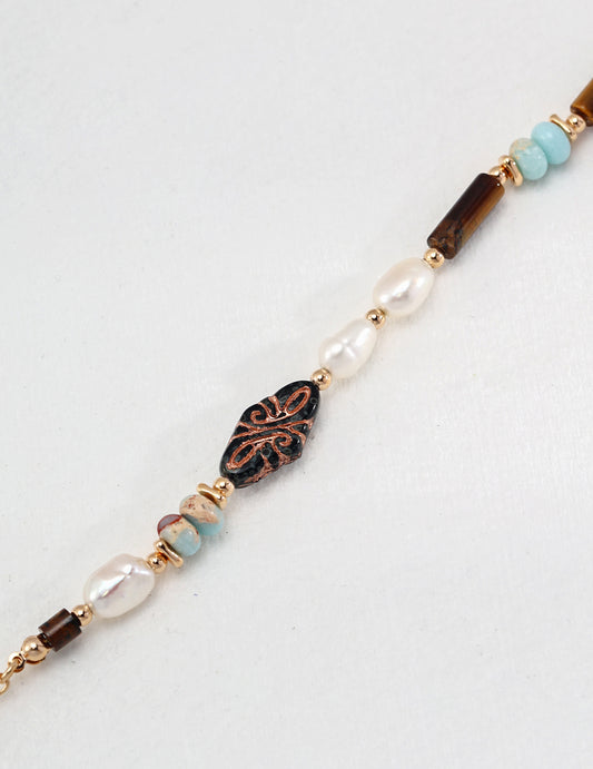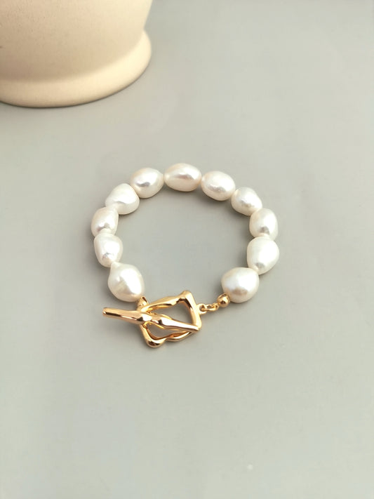 "Flow" series drip glaze cold style design sterling silver pearl bracelet