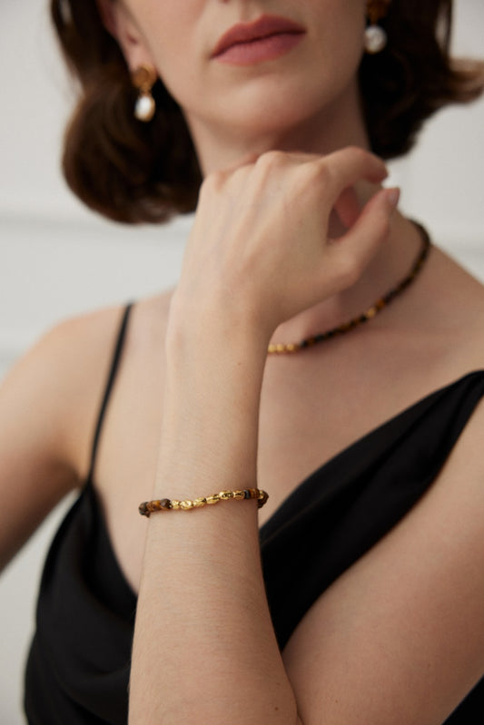 Sterling silver tiger eye stone bracelet (certificate not included)