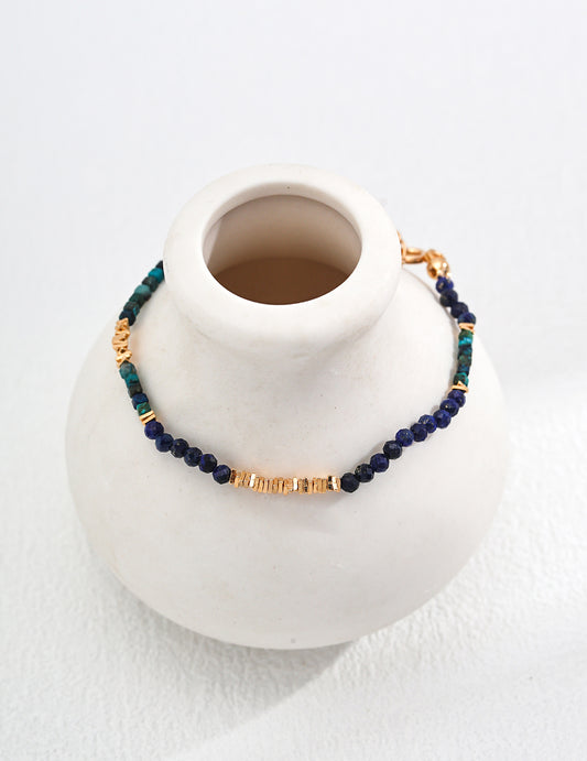 The green square gemstones are like jade, exuding a tranquil and elegant atmosphere. The pearls are like stars in the night sky, dotted in between, adding a touch of mystery and romance.