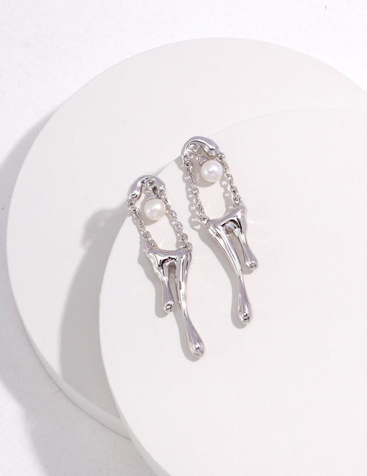 Wind-eroded Feather Series Sterling Silver Pearl Earrings