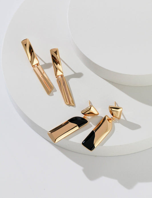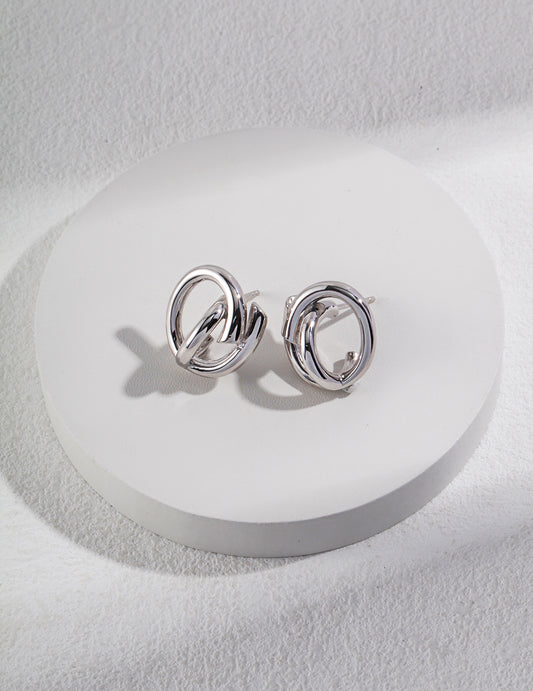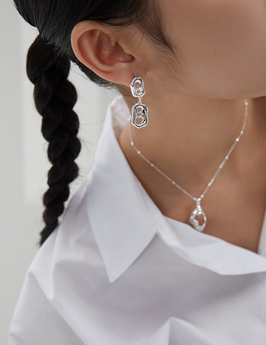 Geometric Sculpture Series Sterling Silver Simple Earrings