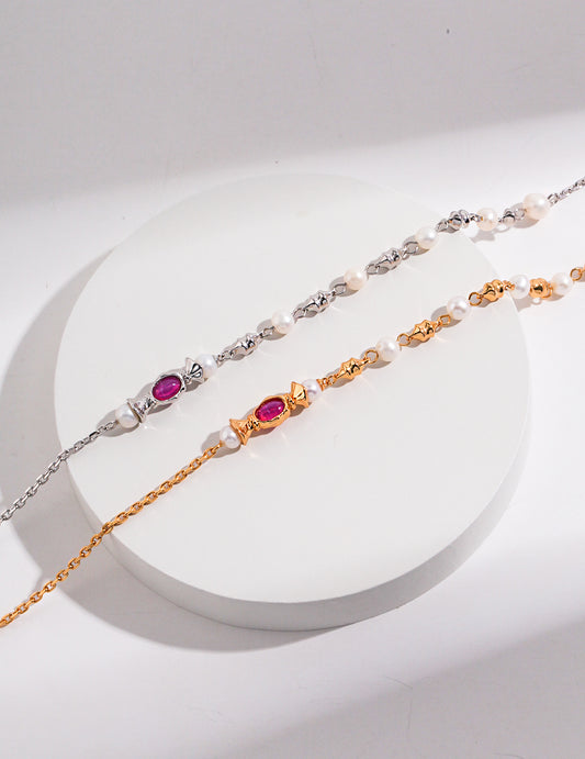 Sterling Silver Strawberry Quartz Pearl Necklace