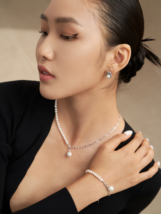 Pearl Remodeling Series: Perfect Round Pearl Silver Earrings/Necklace