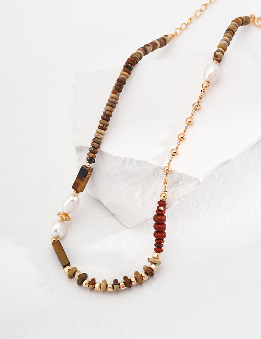 Natural Egg Yolk Stone Pearl Beaded Necklace Maillard Style