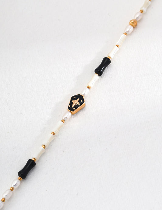 纯银绳结珍珠项链,闪耀如星辰的饰品,以精致绳结为链,串联两颗白色珍珠,一大一小,相映成趣。这颗较大的珍珠,如同月亮般皎洁,散发着柔和的光芒;而那颗较小的珍珠,则如同星星般闪烁,点缀其间,增添了几分俏皮与灵动。
