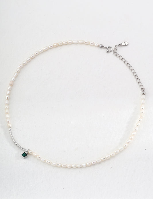 The green square gemstones are like jade, exuding a tranquil and elegant atmosphere. The pearls are like stars in the night sky, dotted in between, adding a touch of mystery and romance.