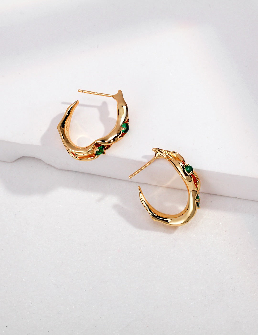 The design is inspired by the curled shape of dead leaves after they wither, fall, dry naturally, and lose moisture. The embellishment of emerald gemstones implies that the dead leaves will serve as nutrients to nurture greater life.