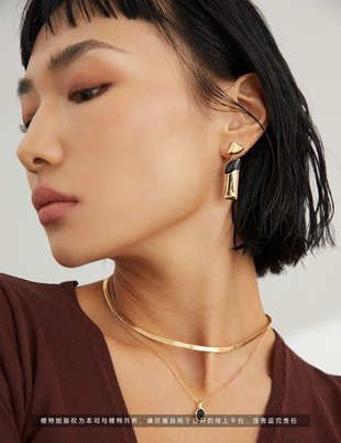 黑色滴釉珐琅工艺,营造出黑白分明的高级感,简约的造型设计出的耳钉大气,时尚。